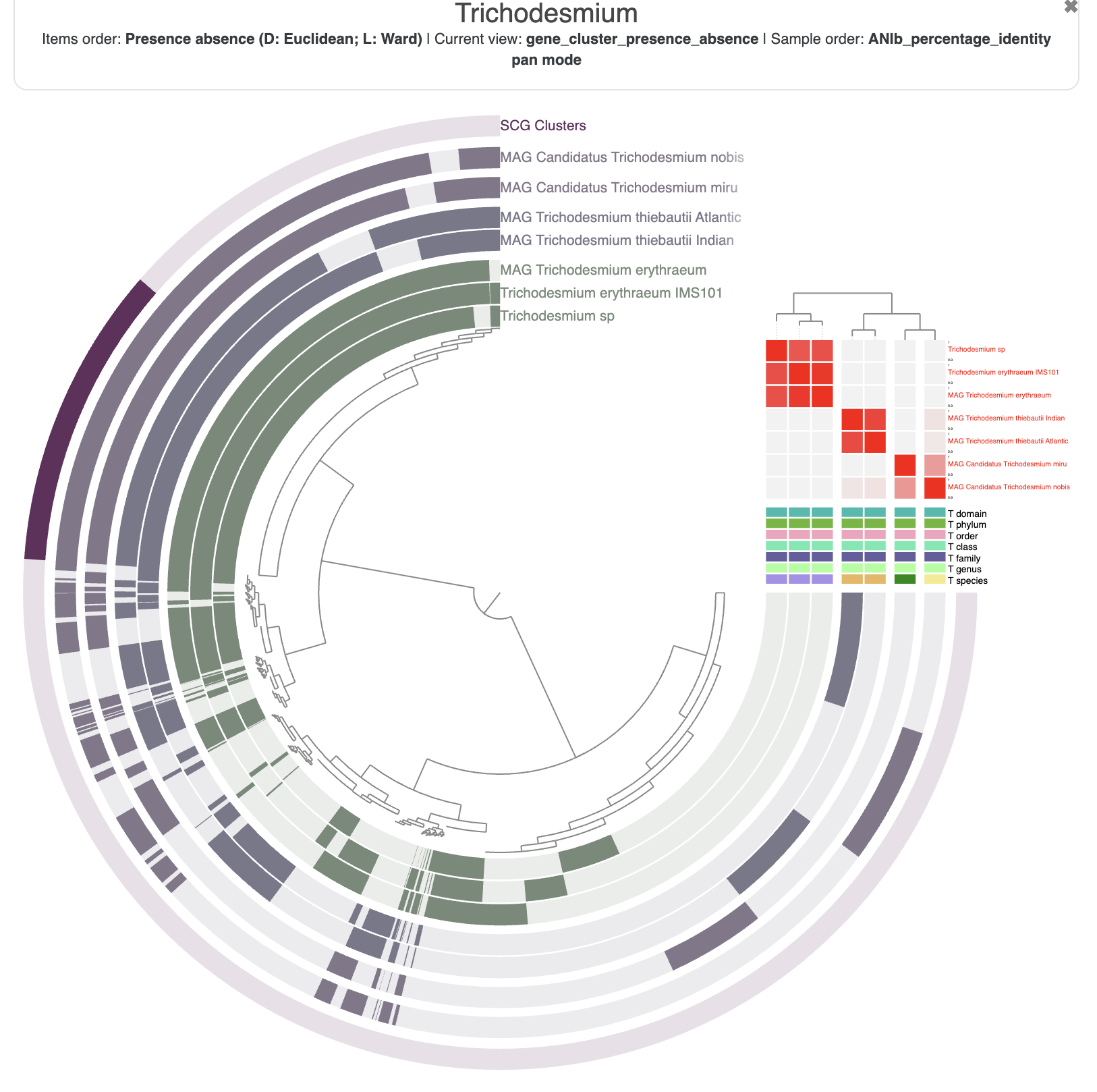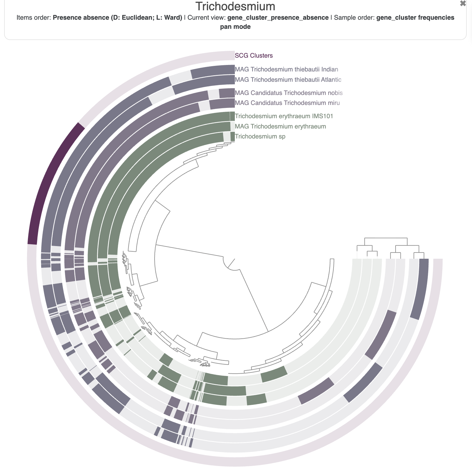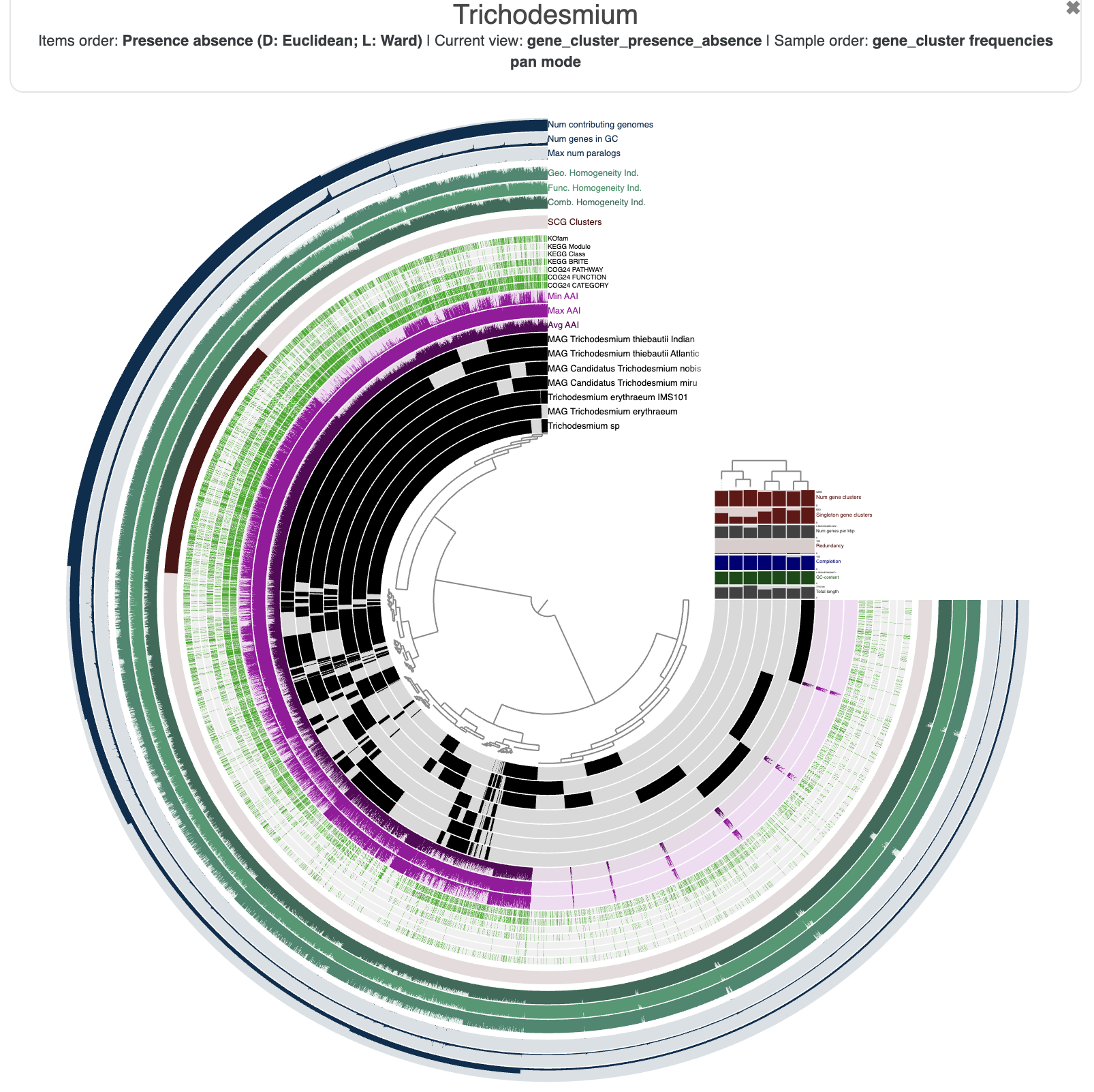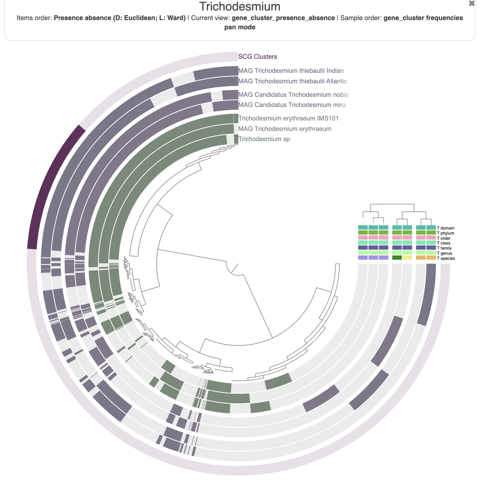 The purpose of this tutorial is to learn how to use the set of integrated ‘omics tools in anvi’o to make sense of a few Trichodesmium genomes. Here is a list of topics that are covered in this tutorial: