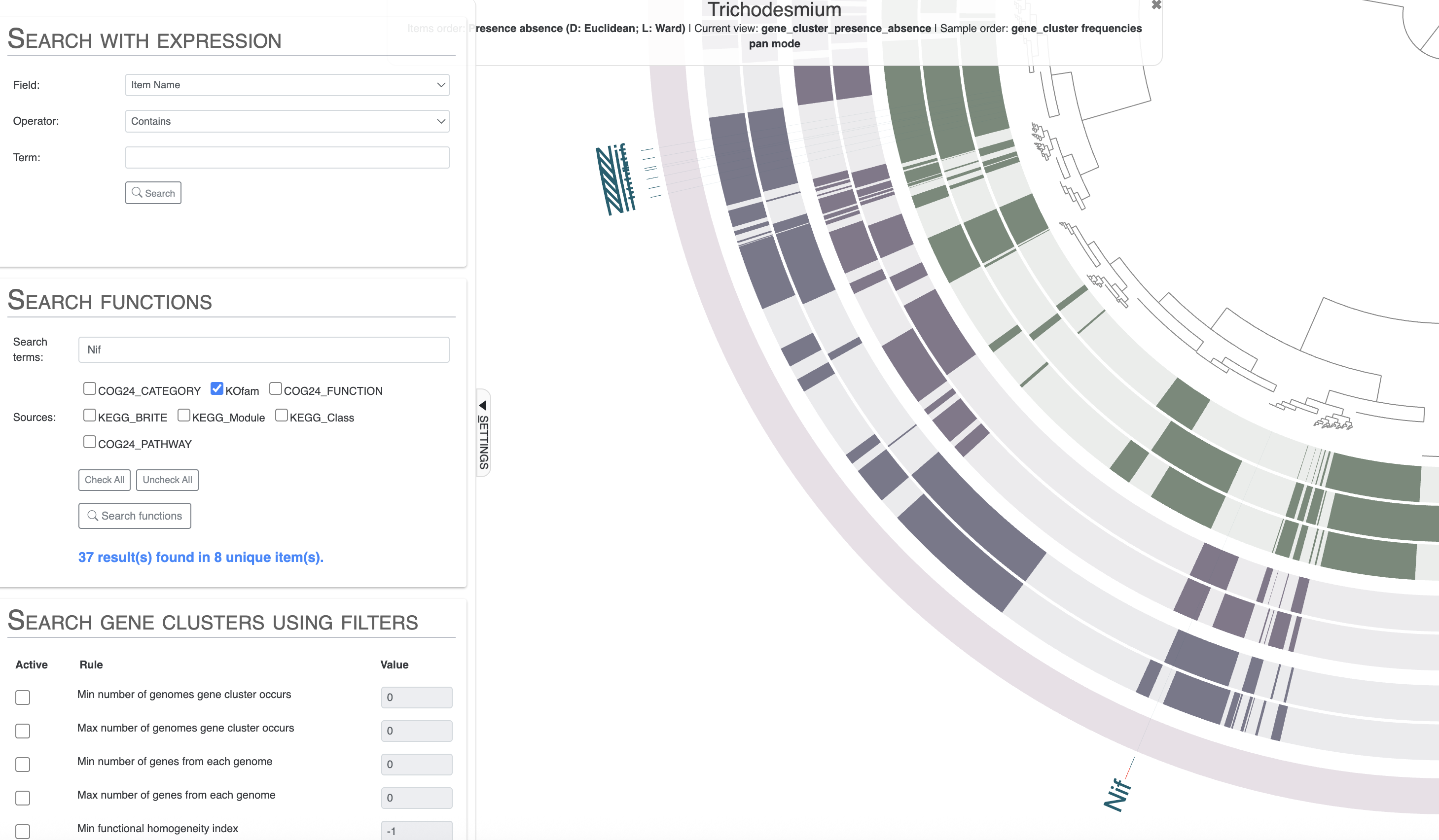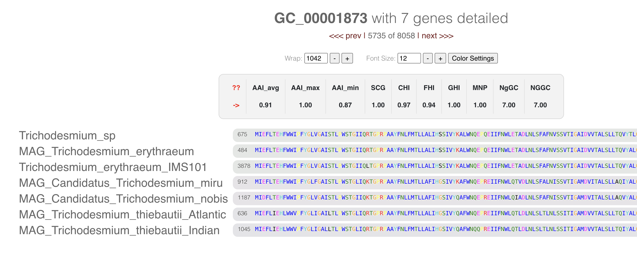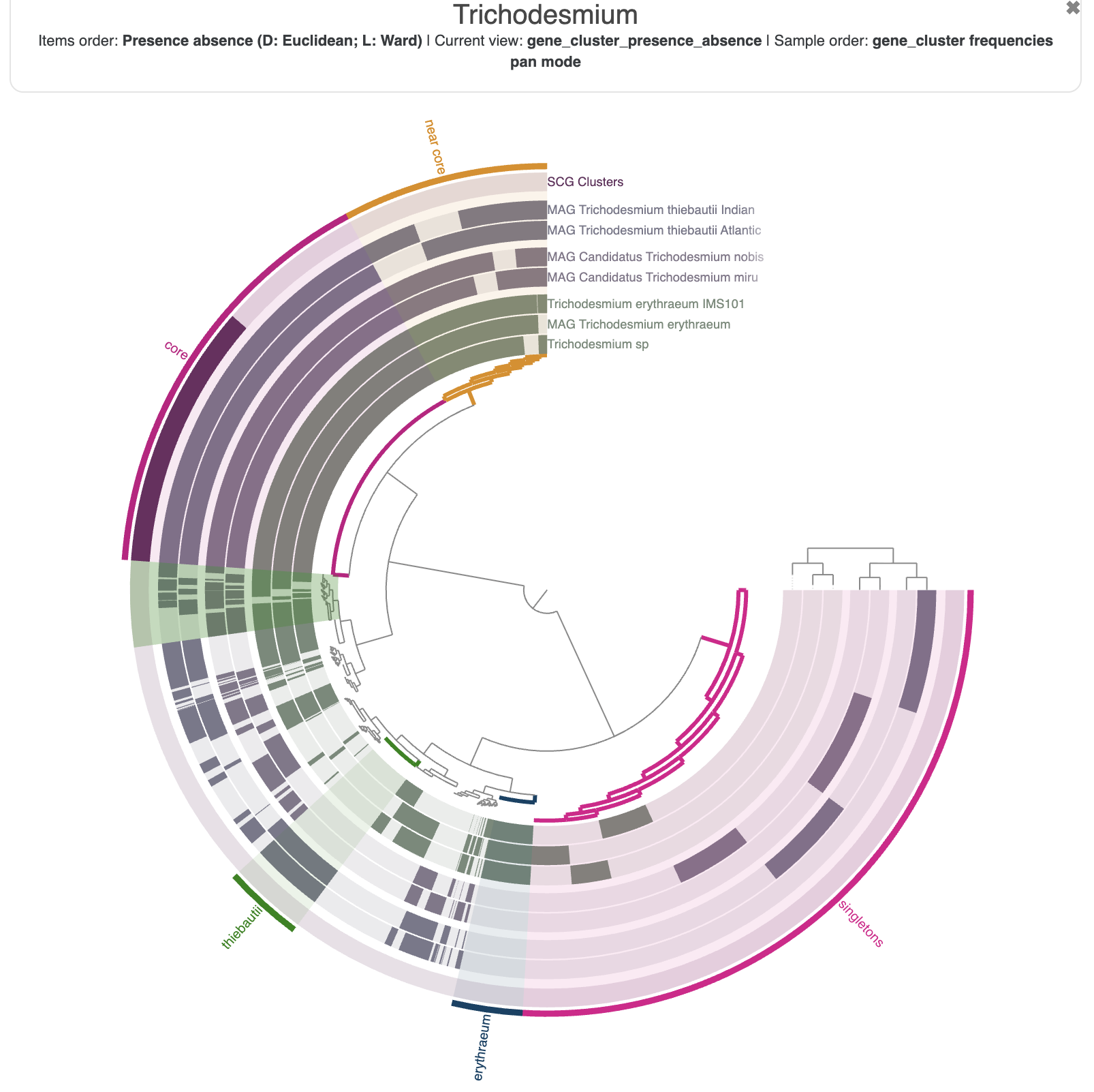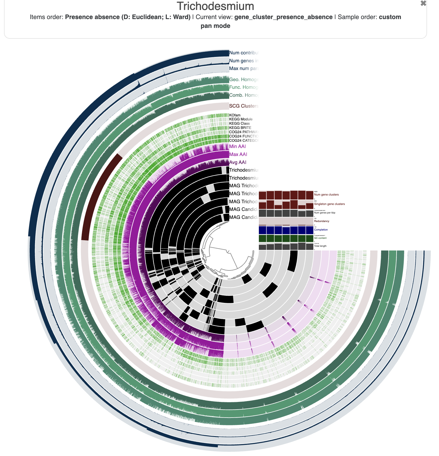 The purpose of this tutorial is to learn how to use the set of integrated ‘omics tools in anvi’o to make sense of a few Trichodesmium genomes. Here is a list of topics that are covered in this tutorial: